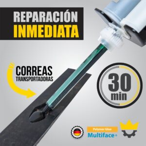 Producto revolucionario de Alemania repara y empalma correas transportadoras de caucho/PVC/PU rápidamente y con facilidad – sin necesidad de agentes de limpieza, solventes, o mezcla de componentes. Ahorra tiempo y costos sin impacto tóxico en el medio ambiente. Ideal para todo tipo de reparaciones: daños superficiales, rasgaduras, recuperación de espesor, empalmes, poleas, elementos de desgaste, protección contra la corrosión y más. Reduce el tiempo y los costos del proceso de vulcanización utilizando una temperatura y presión más bajas. Contáctanos para más información y comienza tu operación de manera segura, limpia y en tiempo récord.